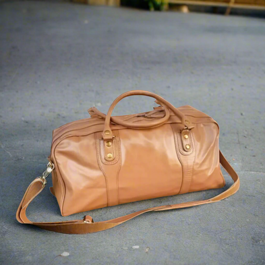 Shop NowTricolor Leather Duffel bag exudes elegance and durability