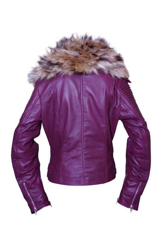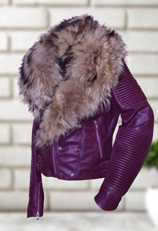 Heavy Fur Collared Leather Jacket For Women Detachable Fur