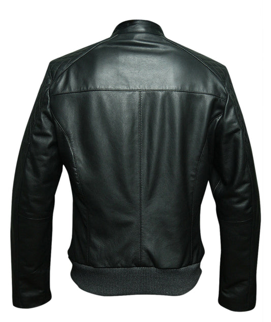 ICONIC BLACK MEN'S LEATHER JACKET WITH QUILTED SLEEVE