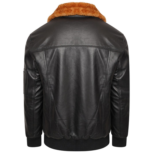 Premium Leather Bomber Leather Jacket Men With Sheep Fur Collar
