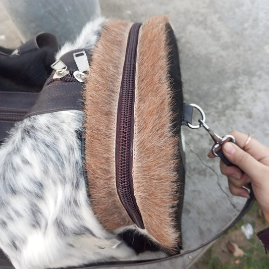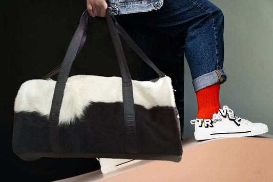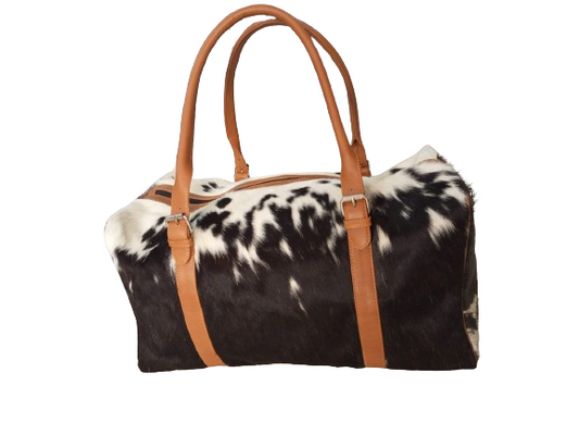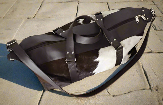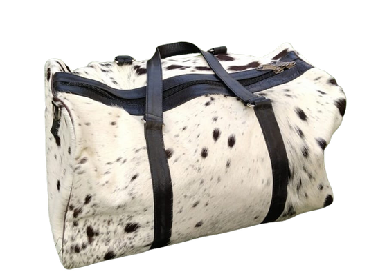 Cowhide Leather duffle travel bag Exclusive Black And White Weekender