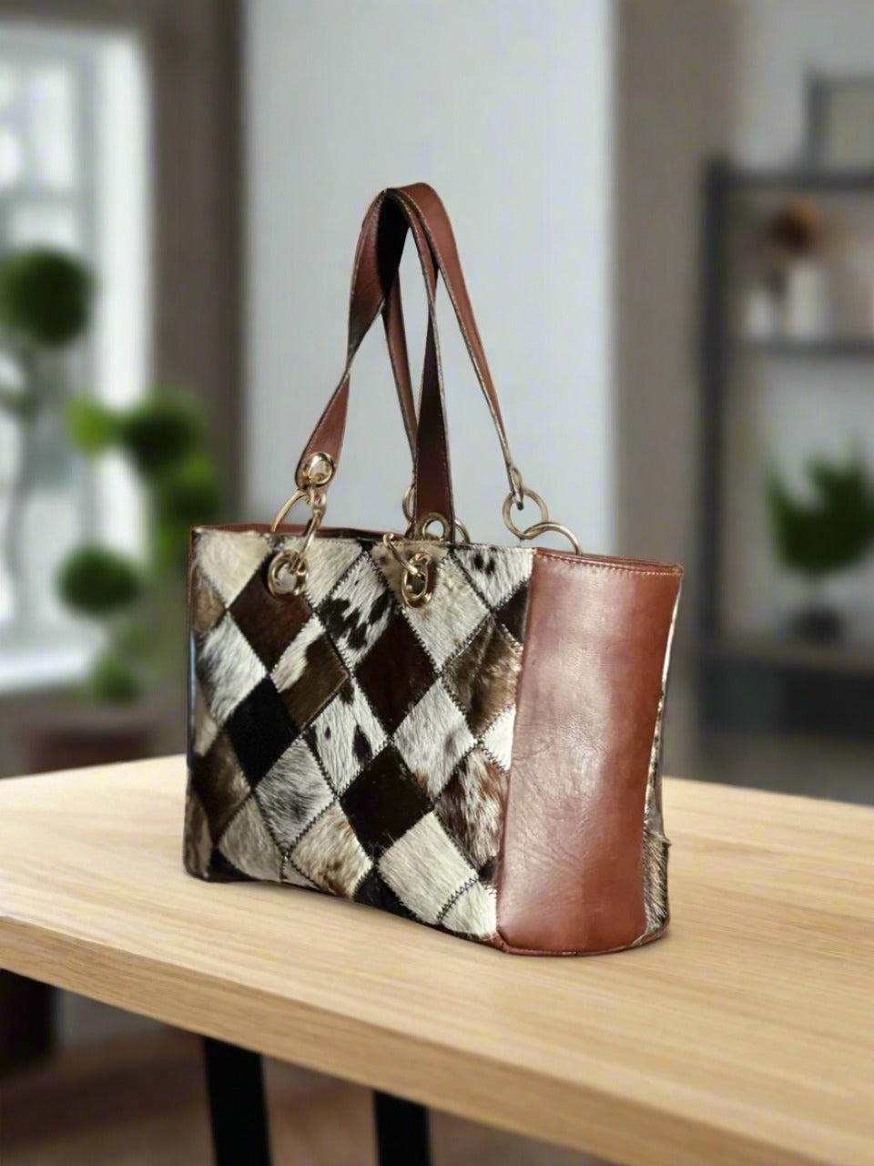 Indulge in luxury with our Cowhide Patchwork Leather Tote Bag. Made of genuine cowhide leather, this bag boasts a unique patchwork design that exudes sophistication and exclusivity. With enough space to carry all your essentials, it's the perfect blend of style and practicality. Elevate your wardrobe with this premium bag.