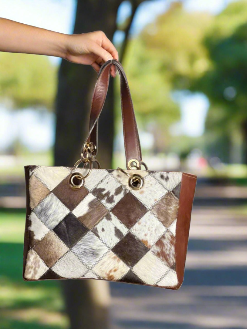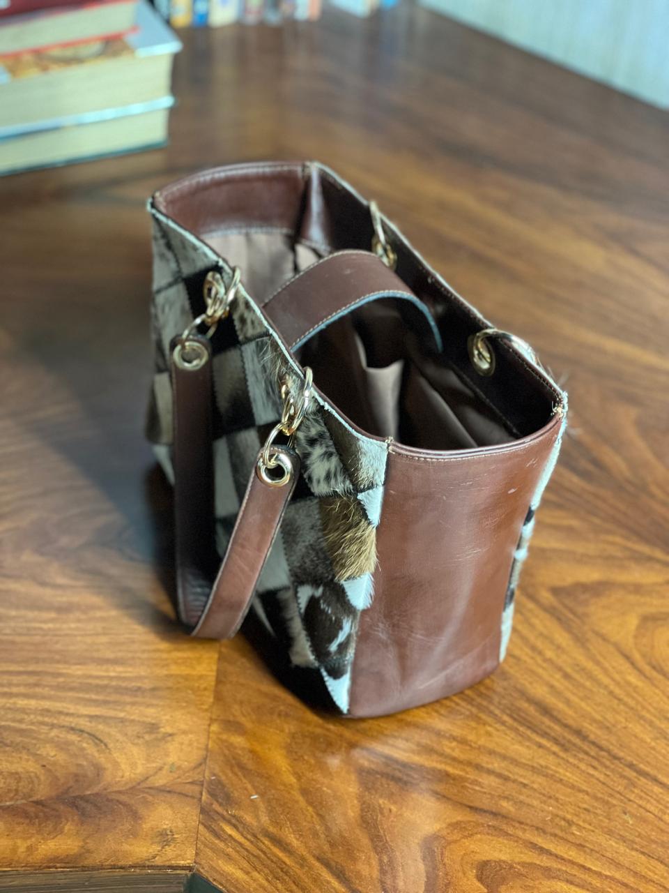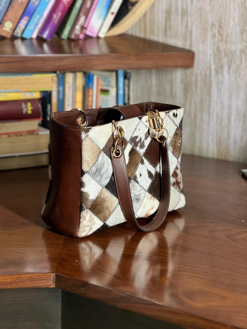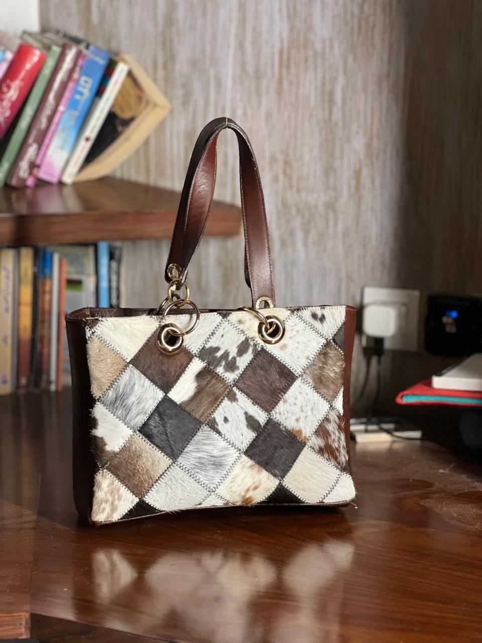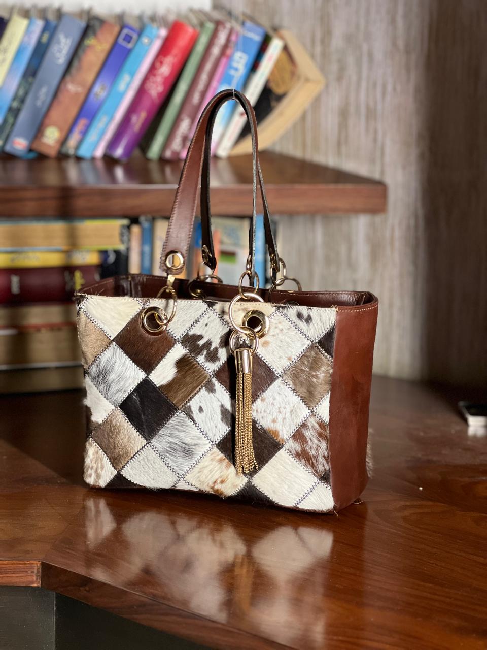 Each cowhide is unique in its print and texture so the bag you will receive will be same but similar in print of cowhide.