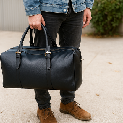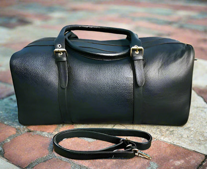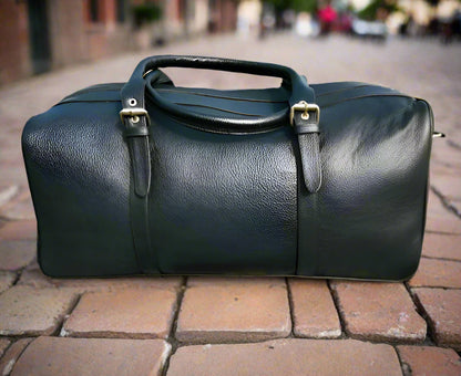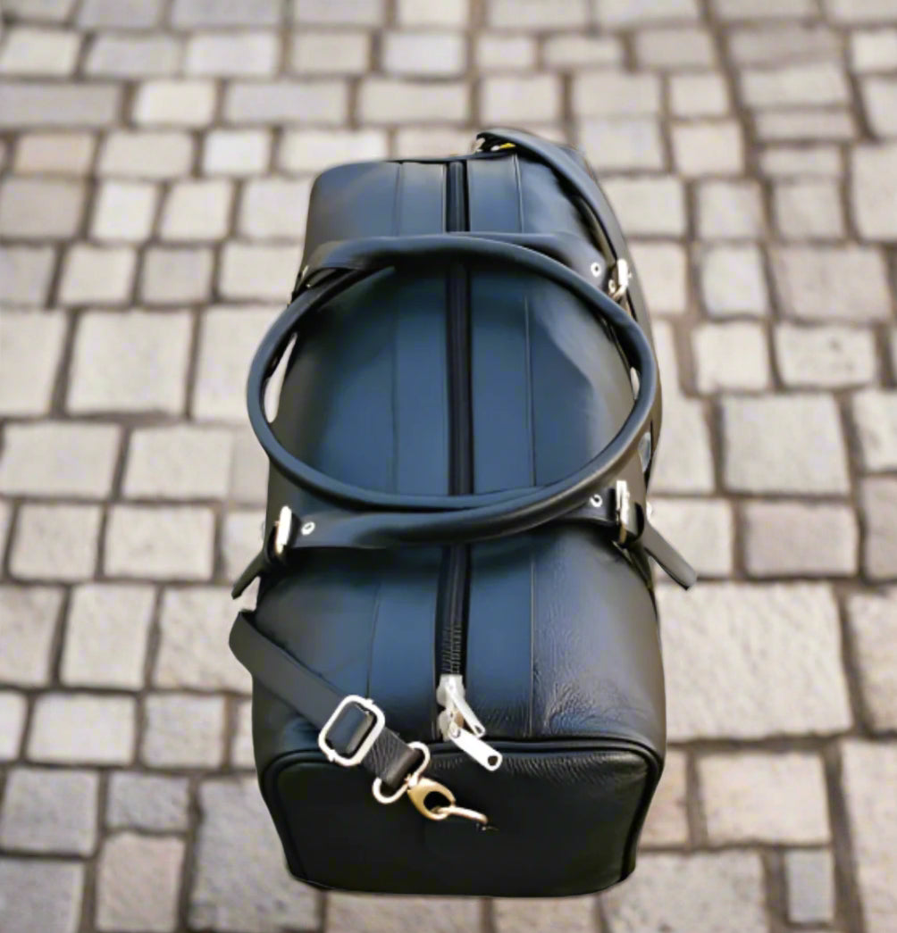 Introducing "The Executive" Duffle, the quintessential travel companion for the discerning individual who demands both impeccable style and robust functionality. Crafted from the highest quality full-grain cow leather in a timeless, deep black, this bag embodies understated luxury. Full-grain leather, celebrated for its unparalleled durability and rich character, ensures that your duffle will not only endure years of travel but will also develop an exquisite, unique patina, telling the story of every adventure it undertakes.