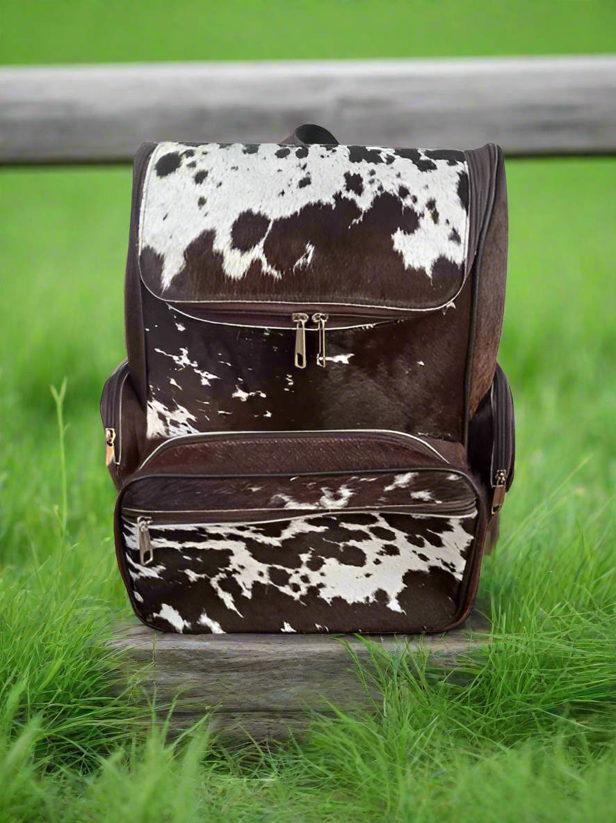 Ease your travel with your baby with our beautiful Cowhide Leather diaper Backpack. Crafted from premium brown n white cowhide leather, this backpack offers both class and convenience. Its spacious design helps that all your baby's essentials are all in one place. Padded back straps makes it extra comfortable for long travel