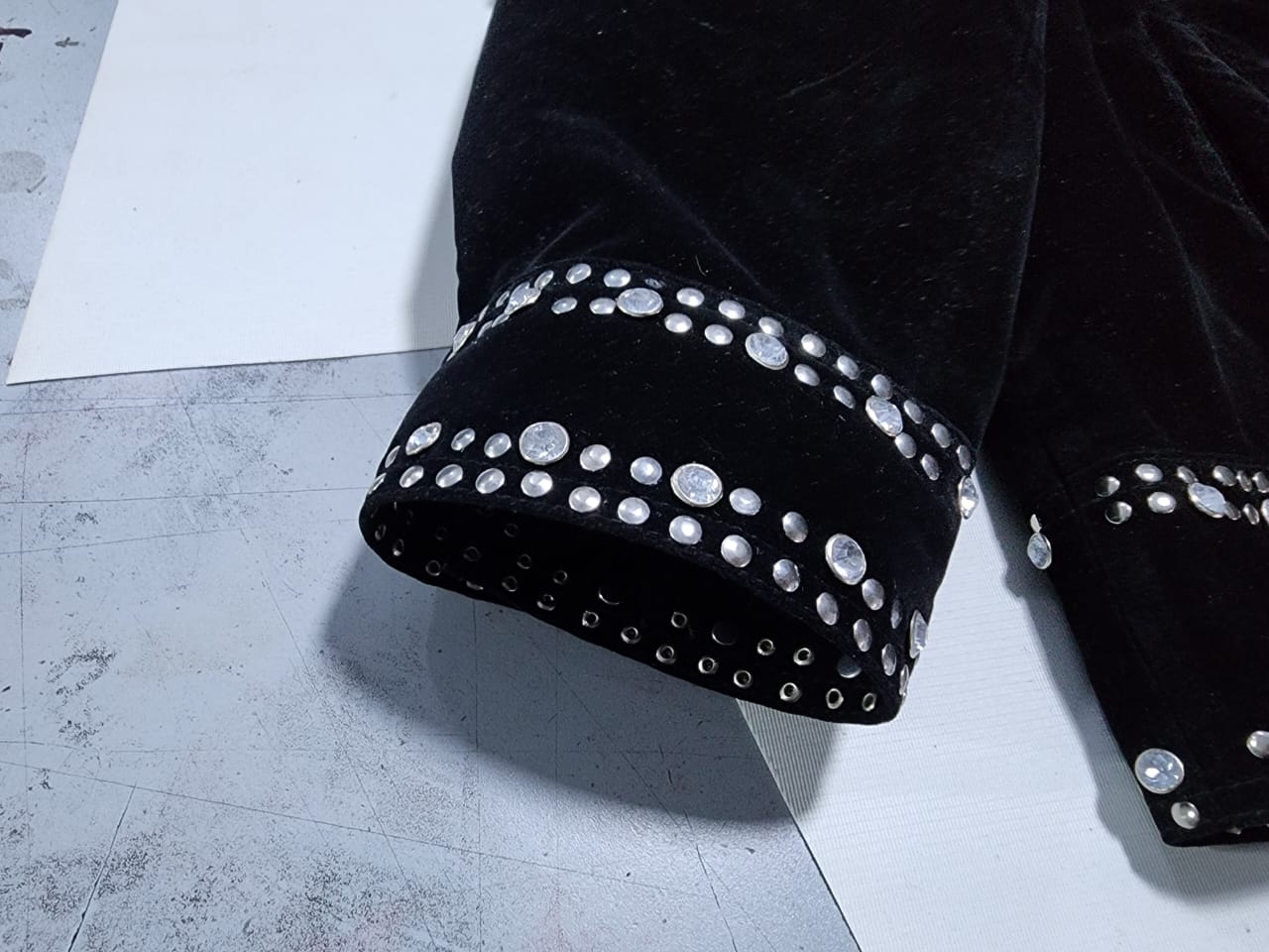 Featuring around 4,000 individually applied rivets and studs, every jacket is a true work of art. The riveting process alone takes 7–9 days, while the complete creation—from pattern making to stitching—requires 15–20 days of skilled artisanal labor. This level of craftsmanship ensures no two jackets are exactly alike.