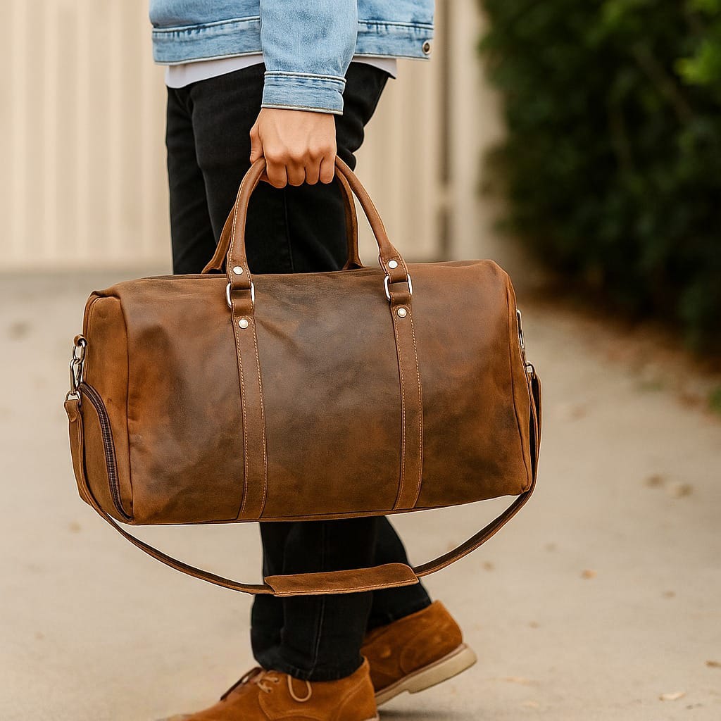 Travel with Distinction: Rugged Leather Duffle with Intelligent Design